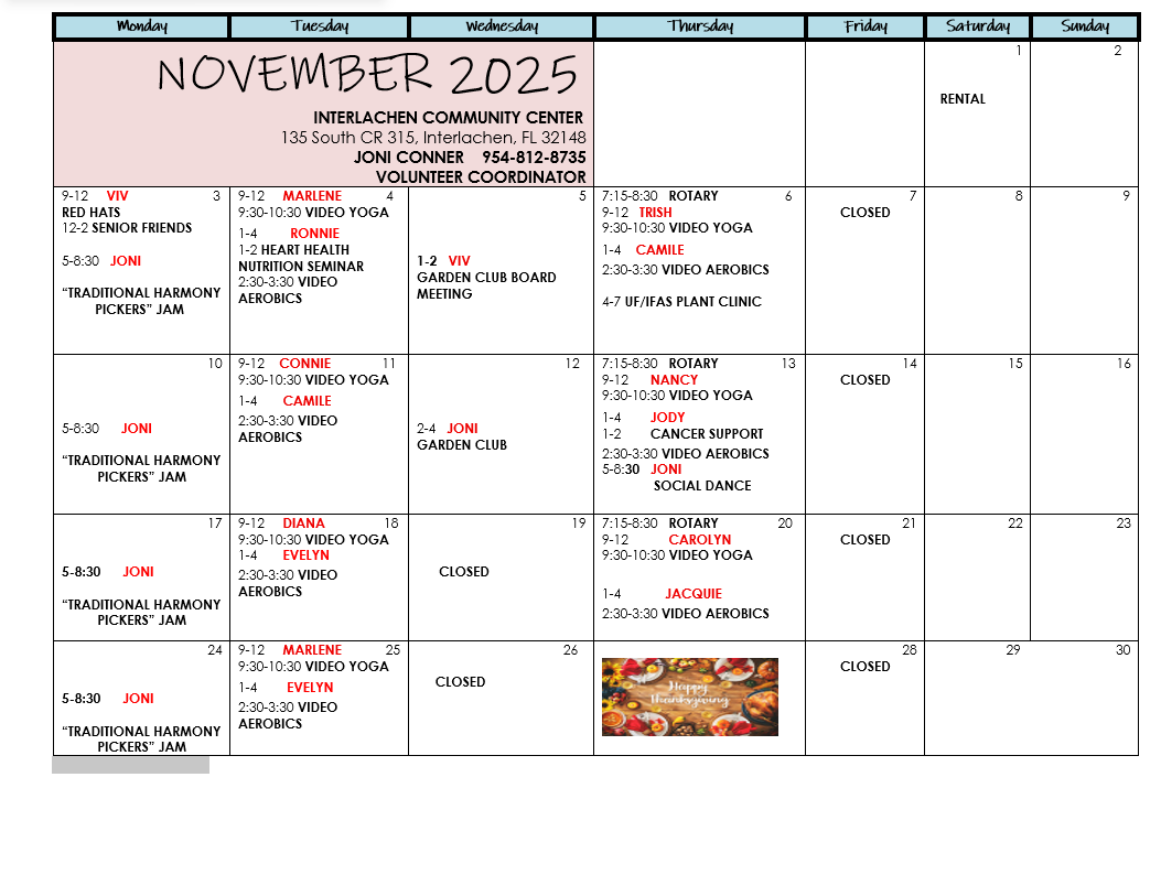 Community Center Calendar